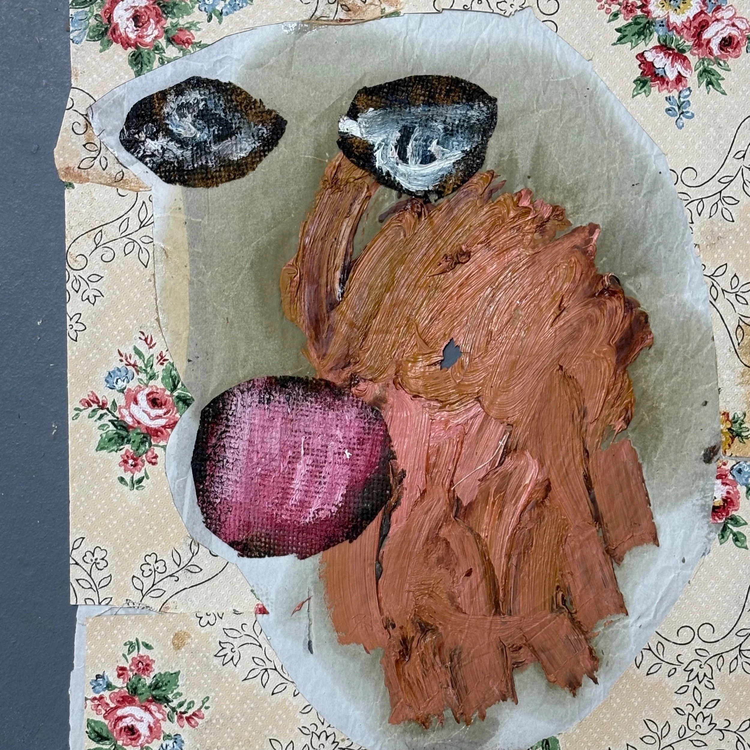 The exhibition’s title also gestures toward ideals of purity and display — and the hidden suffering they can entail. Samantha Fellows and Eloise Peggy Knight both explore the sentimentalisation of dogs through porcelain representations. Fellows paints slick, pristine images of canine “collectibles” inspired by vintage cigarette cards — symbols of control, fragility, and inherited idealism. Knight’s larger canvases blur nostalgia with abstraction, distorting porcelain figurines into dreamlike vessels of memory and loss.